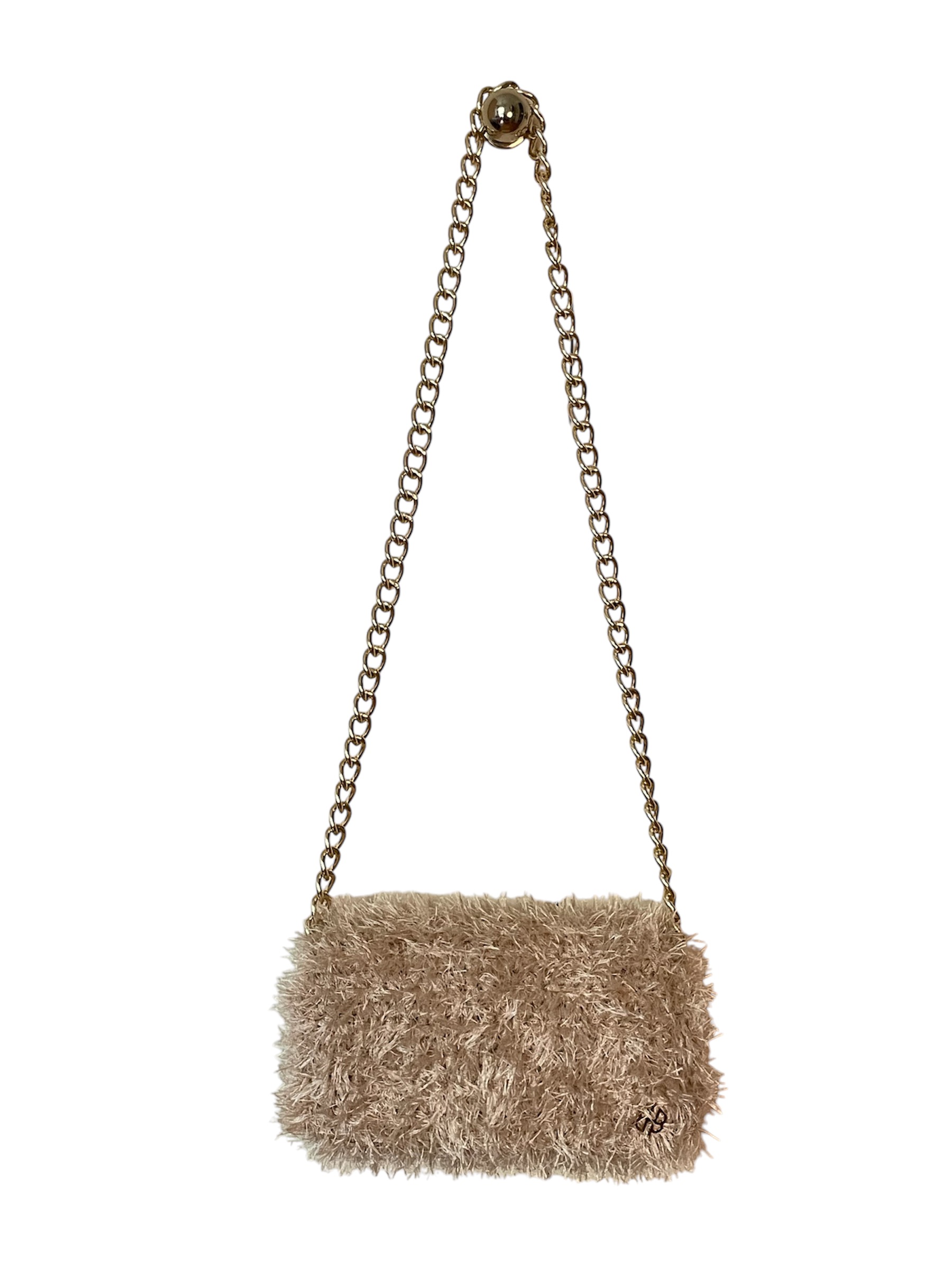 Μια απαλή χνουδωτή τσάντα ιδανική από το απόγευμα αλλά και για μια πολυτελή βραδιά το χειμώνα. Πλεκτή τσάντα ώμου με χνουδωτή υφή. Μακριά αλυσίδα ώμου σε χρυσό χρώμα αλουμινίου. Η εσωτερική επένδυση είναι μοναδική για κάθε τσάντα τύπου μπροκάρ με χρυσά μοτίβα. Διαθέτει δύο στιβαρά μαγνητικά κουμπιά. Δεν θα ξεχειλώσει καθώς έχει εσωτερική υποστήριξη. Μπορεί να καθαριστεί εύκολα με ένα υγρό πανί. 13(h)x25(l)x8(w)